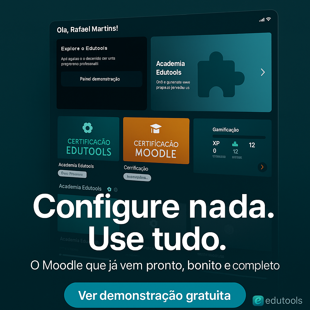 O Edutools oferece uma solução completa para quem busca modernizar o Moodle com recursos de EAD corporativo, gamificação, relatórios e design avançado.